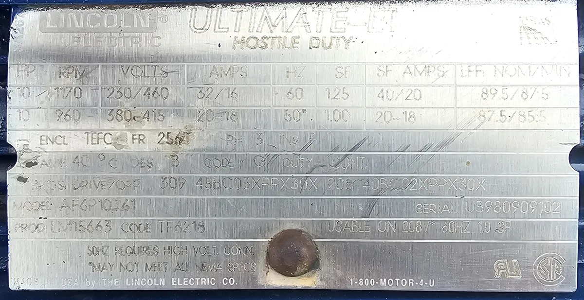 Motor Eléctrico 10hp 1200rpm Marca Lincoln Electric