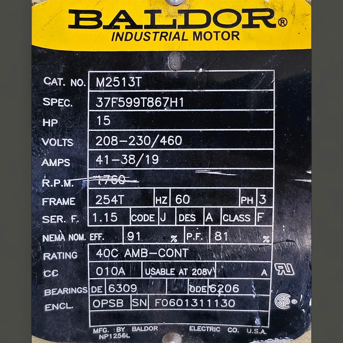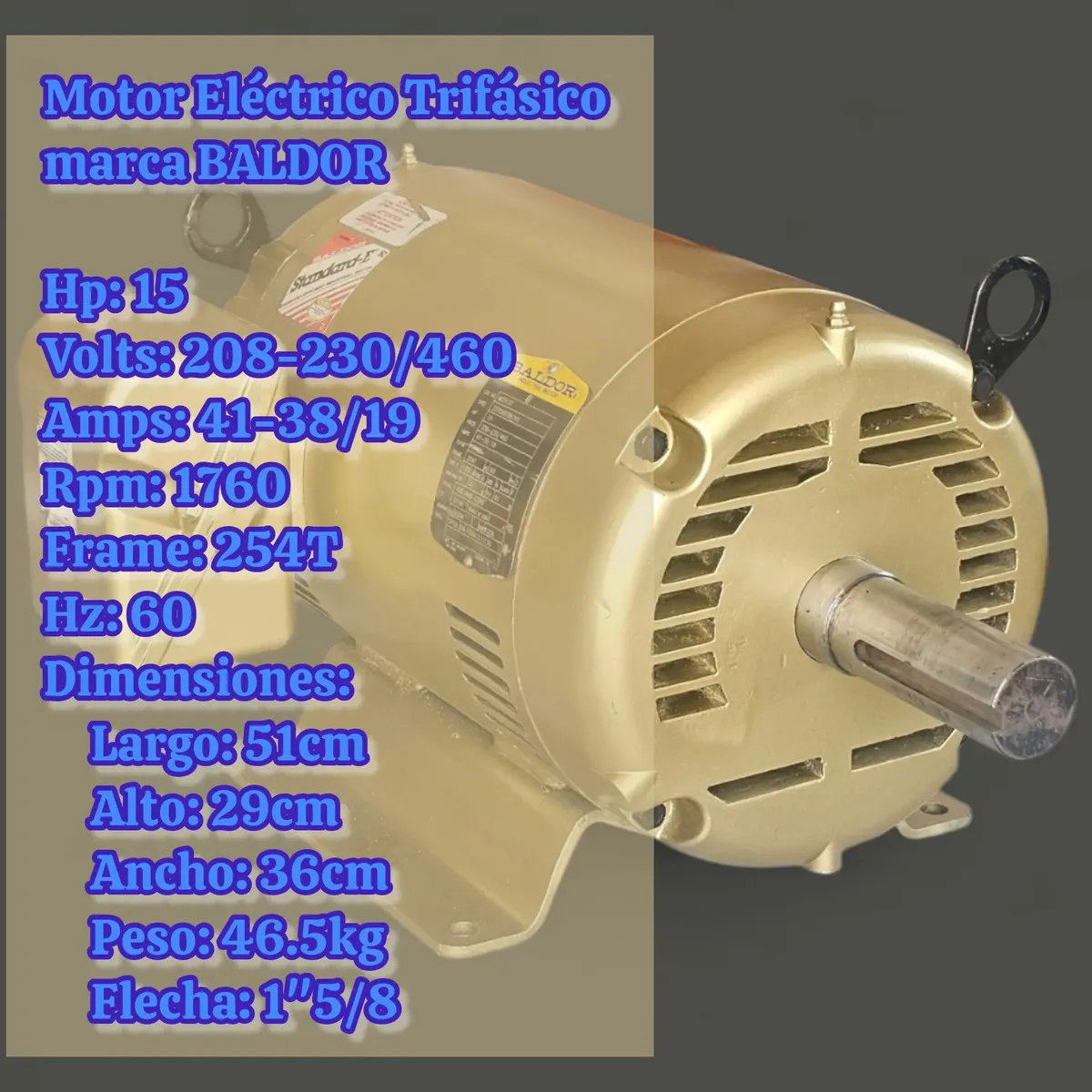 Motor Eléctrico 15hp Trifásico 1760rpm Marca Baldor