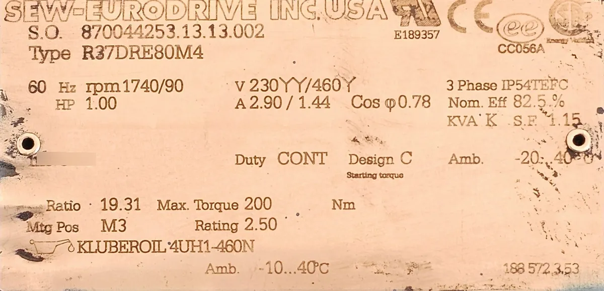 Motorreductor 1hp Trifásico Ratio: 8.1 Marca Seweurodrive