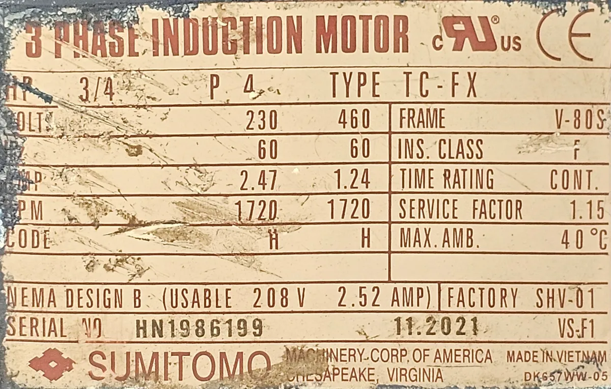 Motorreductor 3/4hp Trifásico Ratio: 43.1 Marca Sumitomo