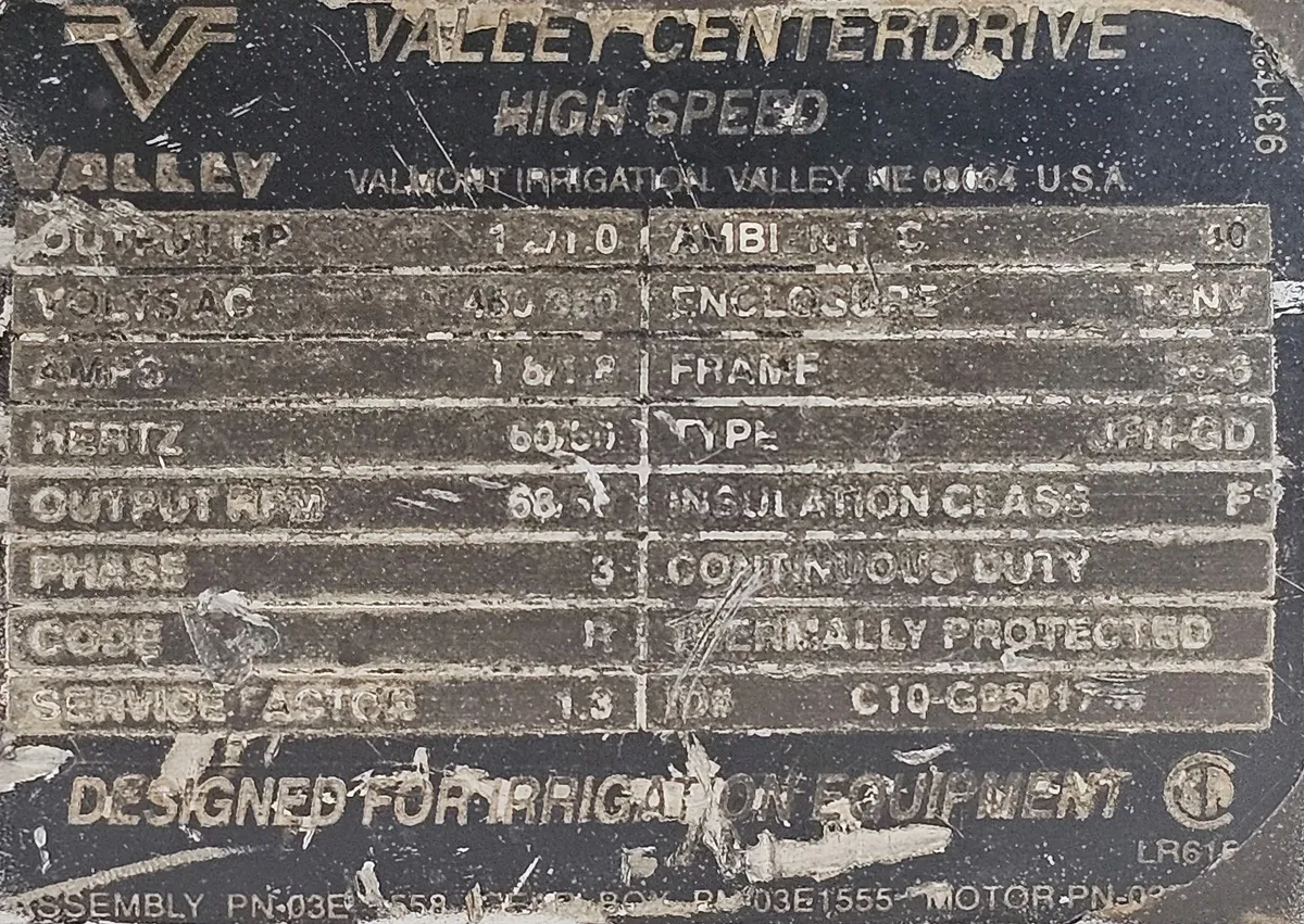 Motoreductor Trifásico especial para sistema de riego marca VALLEY