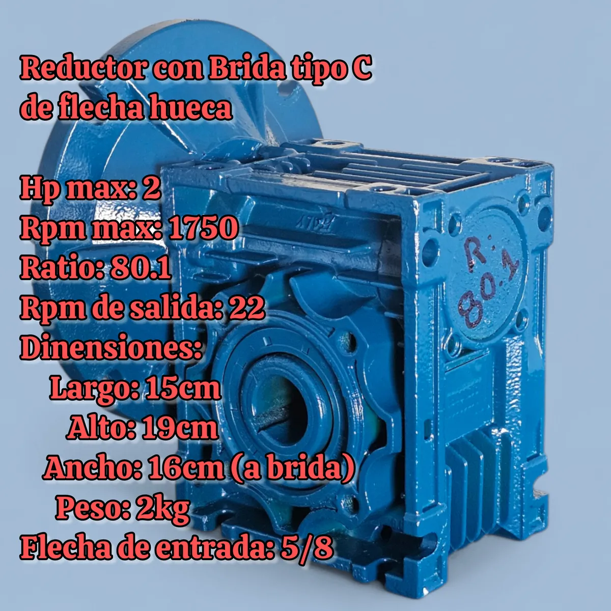 Reductor Para 2hp Con Brida Tipo C R:80.1 De Flecha Hueca